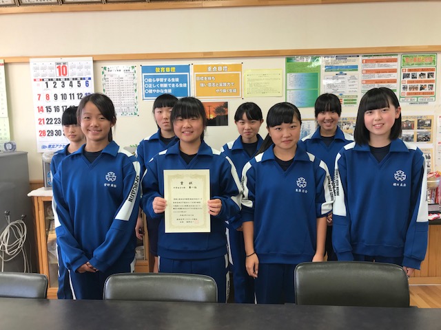 10月13日に行われた南相馬市教育長杯争奪Sリーグ南相馬地区予選会において、本校女子ソフトテニス部は、チーム全員が心を一つにして試合に臨み、見事、優勝を果たしました。上位大会は11月24日、相馬市角田テニスコートで行われます。選手達は「次の大会も勝つことを目標に全員で頑張りたい」と意気込みを語ってくれました。