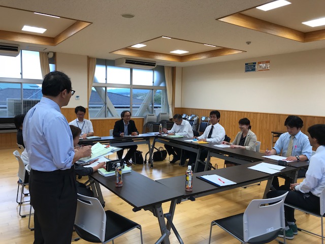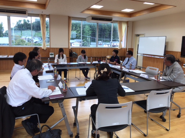 15:30より本校多目的室において、相双教育事務所 指導主事 菅野哲朗様、南相馬市教育委員会 指導主事 矢内信男様をはじめ、石神ブロック三小中学校の推進教師等、担当の先生方にお集まりいただき、9月13日に石神中学校で行われた授業研究会の成果と課題について、10月19日に石神第二小学校で行われる授業研究会の概要(日程や内容)や協力体制に話し合いました。
