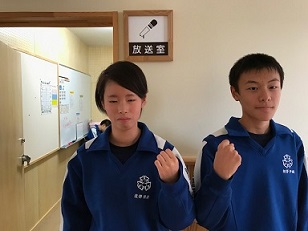 今日のお昼の放送では、明日からの新人戦に臨む、男・女バレーボール部、男・女バスケットボール部の部長が各部を代表して、新人戦への意気込みを発表しました。