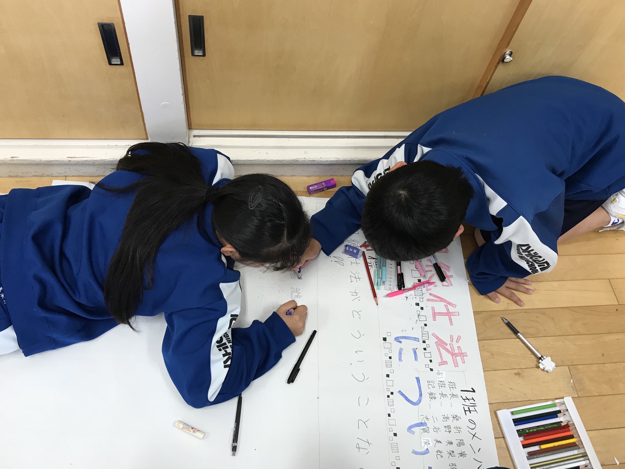 1年生は昨日の地域学習で体験・学習してきたことを、個人新聞、班での新聞作成を通してまとめています。