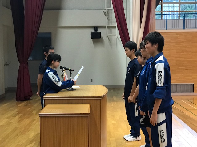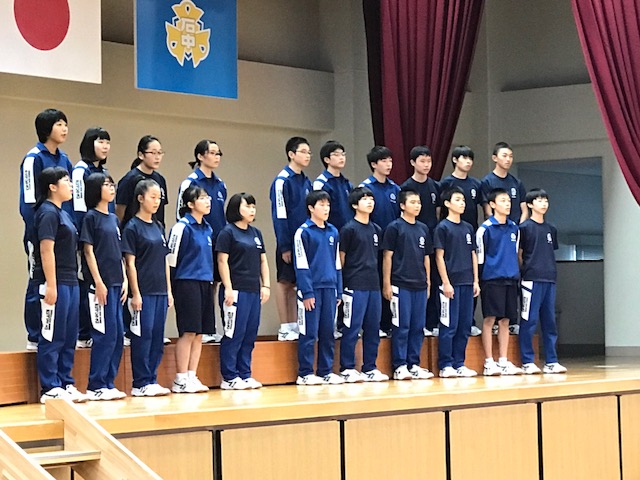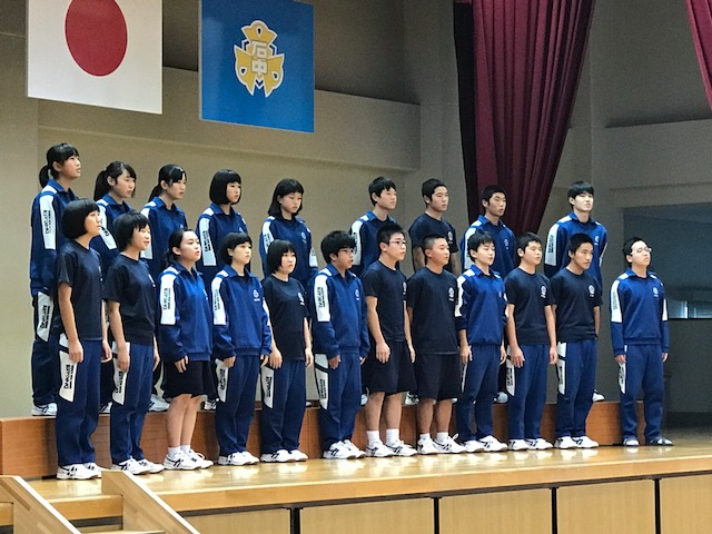テニス部と剣道部のみなさん、新人戦が近づいてきましたね。夏休み、皆さんは、暑い中、その暑さに負けず、頑張ってきたと思います。卓球部と野球部は新人戦を終えて、背中が少し大きくなったように感じます。石神中生としての誇りをもち、「石神PRIDE」を忘れずに頑張ってきてください。