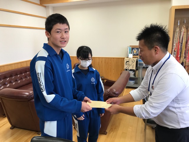 生徒会長の森洋斗士君が生徒代表激励の言葉をおくりました。