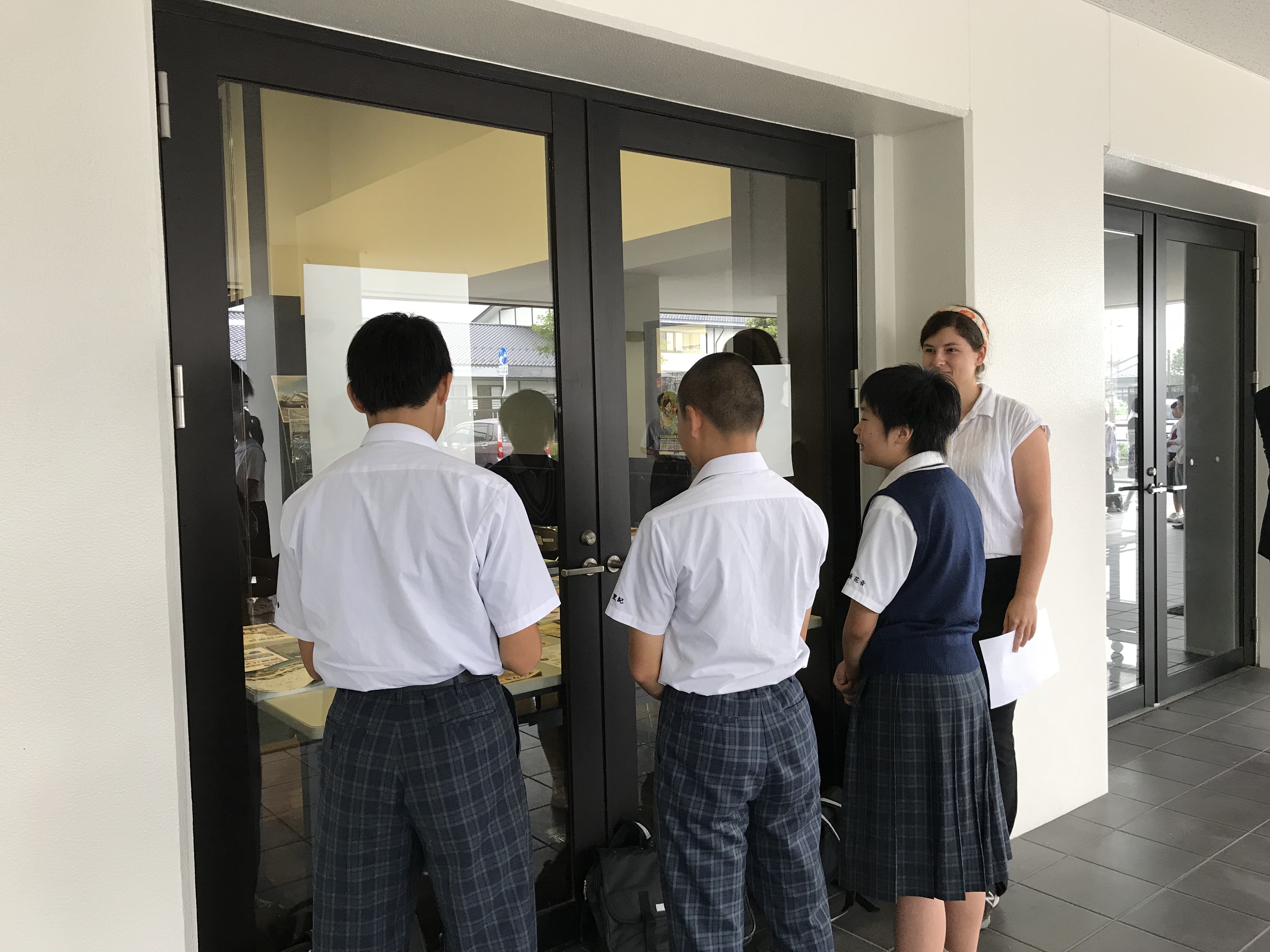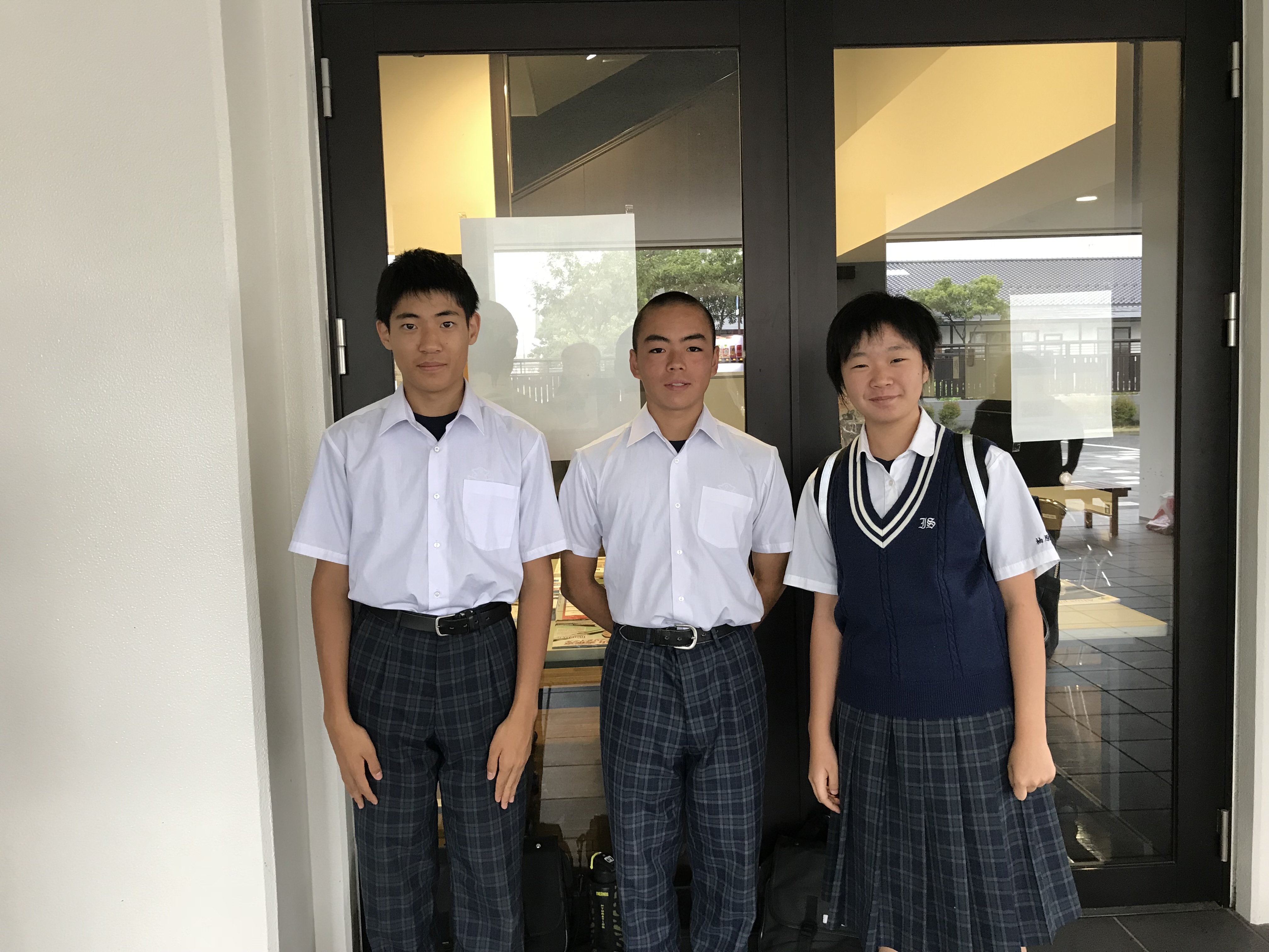 今日は英語弁論大会当日です。会場の相馬市民会館に若干緊張の面持ちの3名が集合しました。