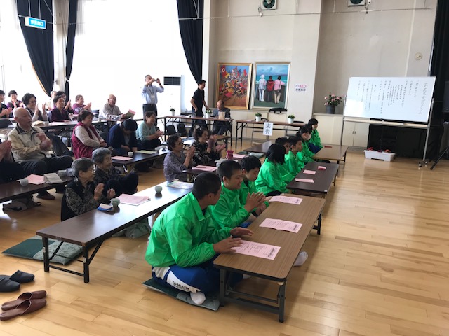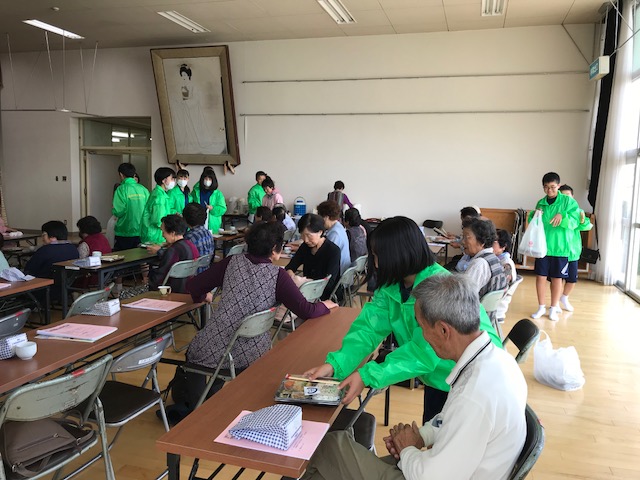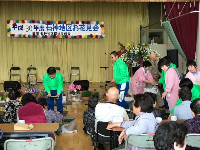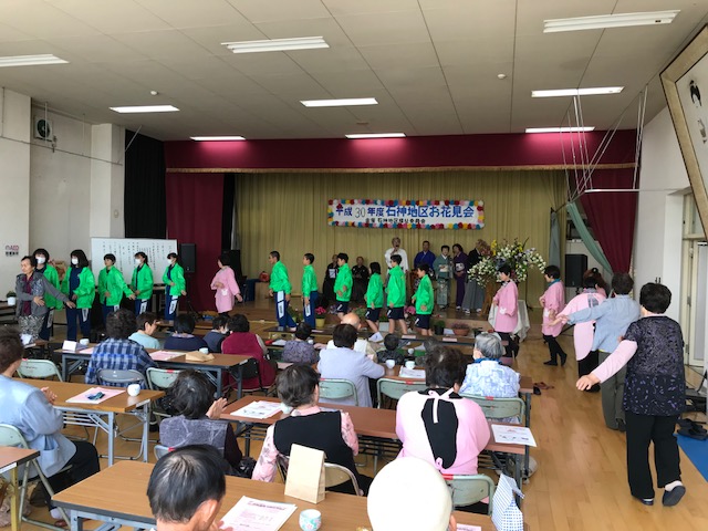 昨日27日(日)、10時より石神生涯学習センターで「お花見会」が開催され、本校のボランティア委員会の生徒11名が、アトラクションへの参加、昼食の配膳や片付け、ゲームの進行のお手伝い等を行いました。はじめは緊張した表情の生徒達でしたが、次第に、地域の皆様に溶け込み、積極的に活動することができるようになりました。