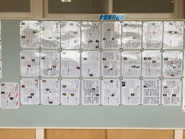 2学年では、昨日26日(木)の総合的な学習の時間に、一昨日25日(水)に実施した仙台市内での学習旅行で学んだことを新聞にまとめました。これまでの新聞づくりの経験をいかして短時間で見事な新聞をつくりあげました。