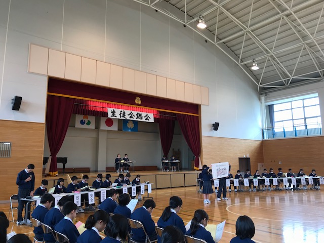 本日、5月2日(水)午後、本校体育館において生徒会総会が開催されました。平成30年度の石神中学校生徒会の活動方針を決める大切な場に、全校生徒が真剣な態度で臨みました。本年度スローガン「石神PRIDE」のもと一人一人が石神中生であることに誇りを持ちより良い校風を築いてほしいと思います。