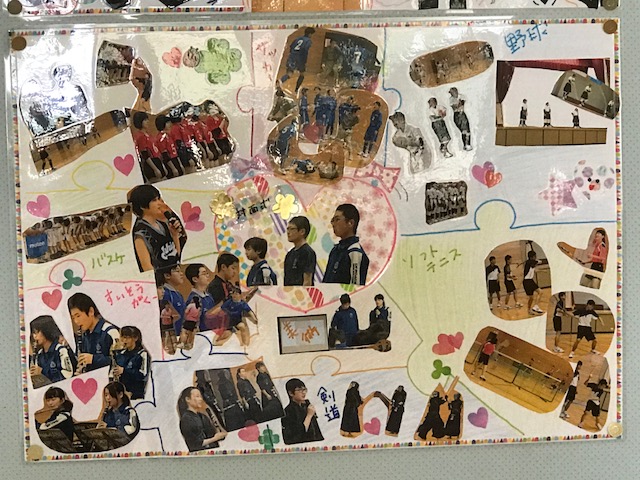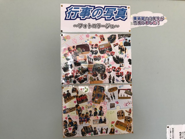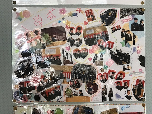 美術・文芸部の3年生が、4月の学校行事の写真を使ってフォトコラージュを作りました。あっという間に4月が過ぎ去り、五月半ばとなりましたが、作品を見ながら、4月の学校生活を振り返ることが出来ました。