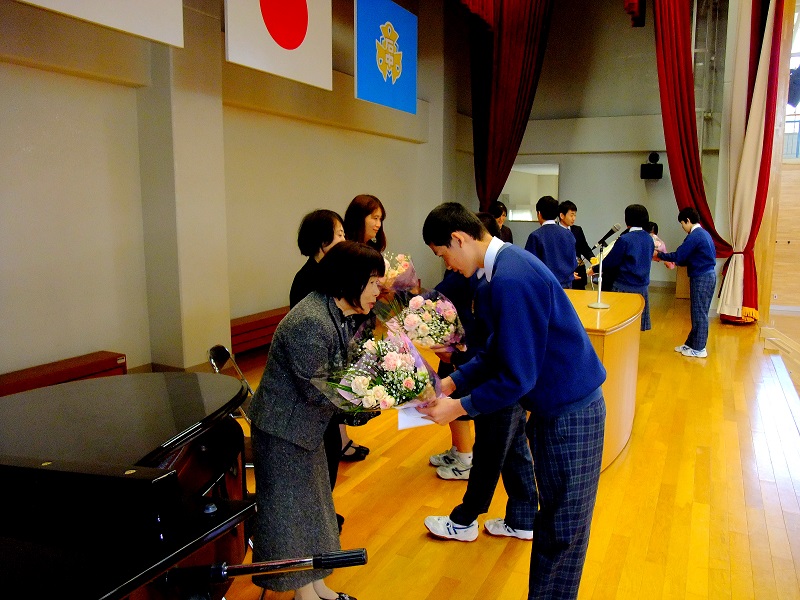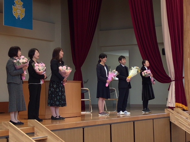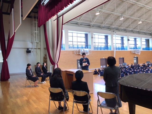 本日3月28日(水)、本校体育館において離任式を実施し、6名の先生方とお別れをしました。