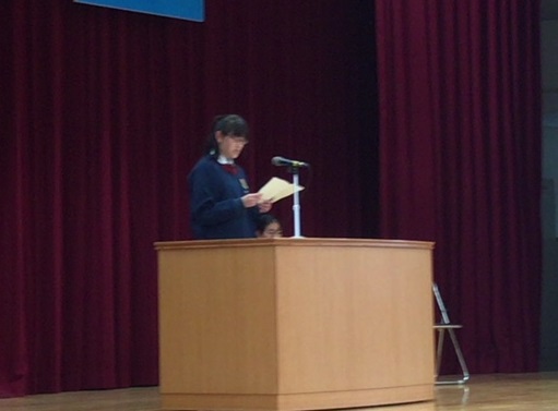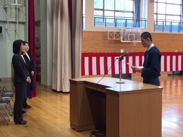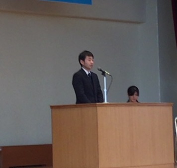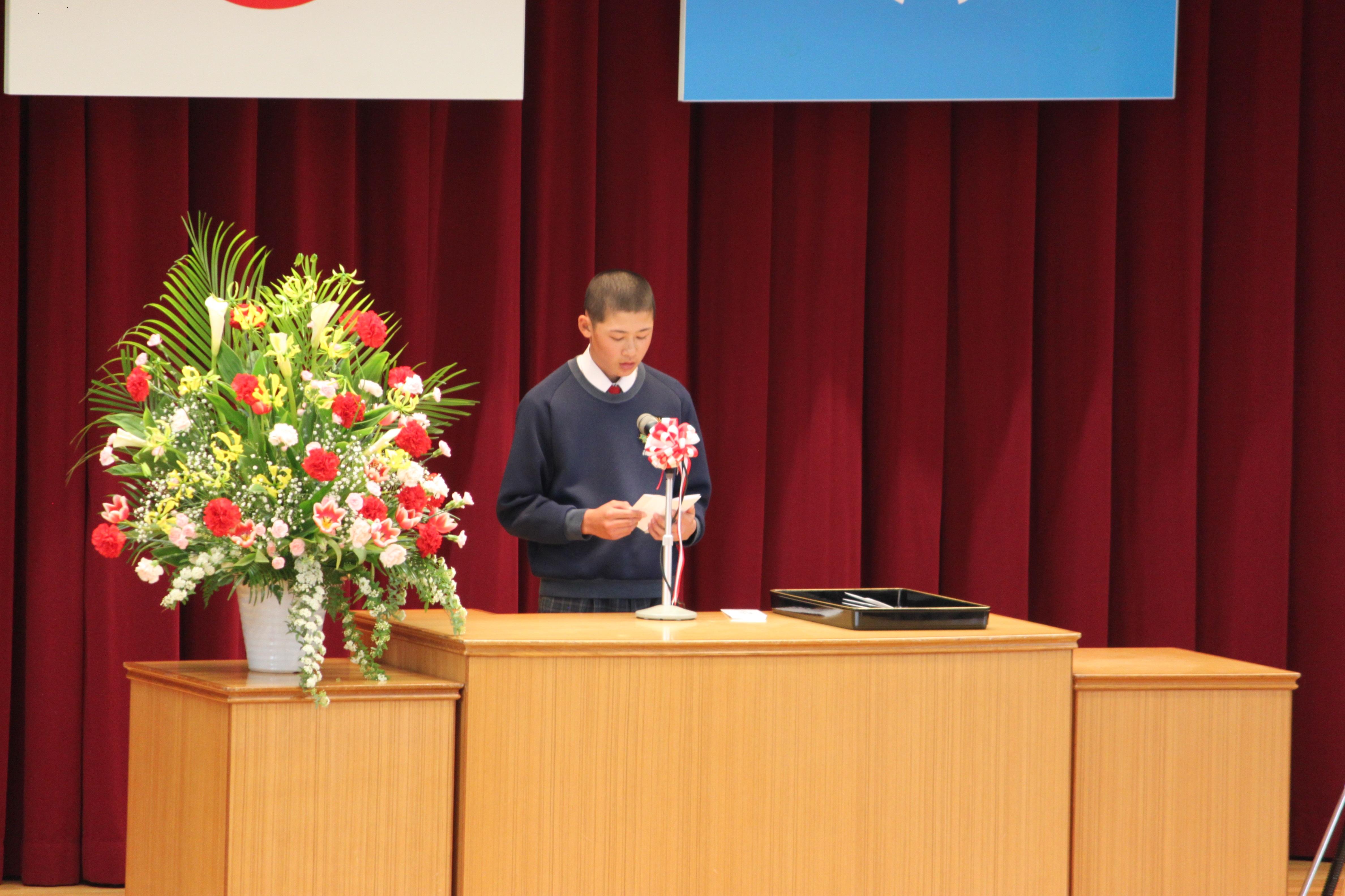 つづいて生徒代表 森洋斗士君(3年)が歓迎の言葉を述べました。