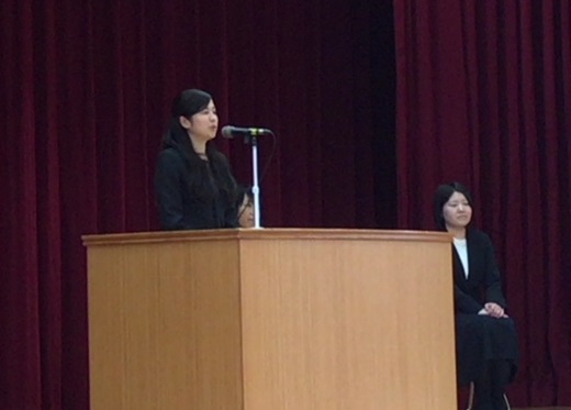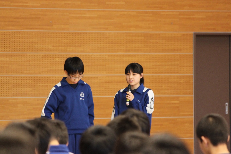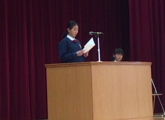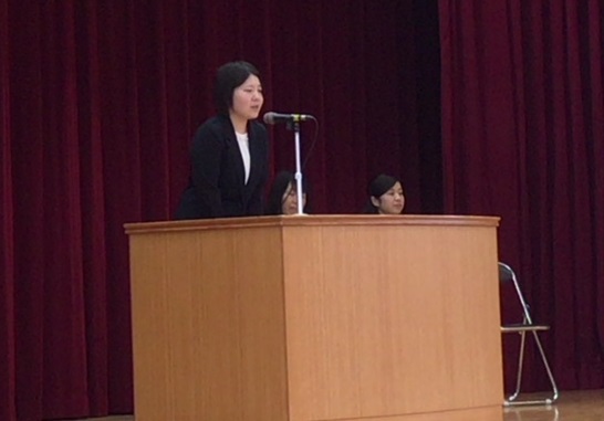校長式辞の後、2,3学年生徒代表が今年の抱負を発表しました。