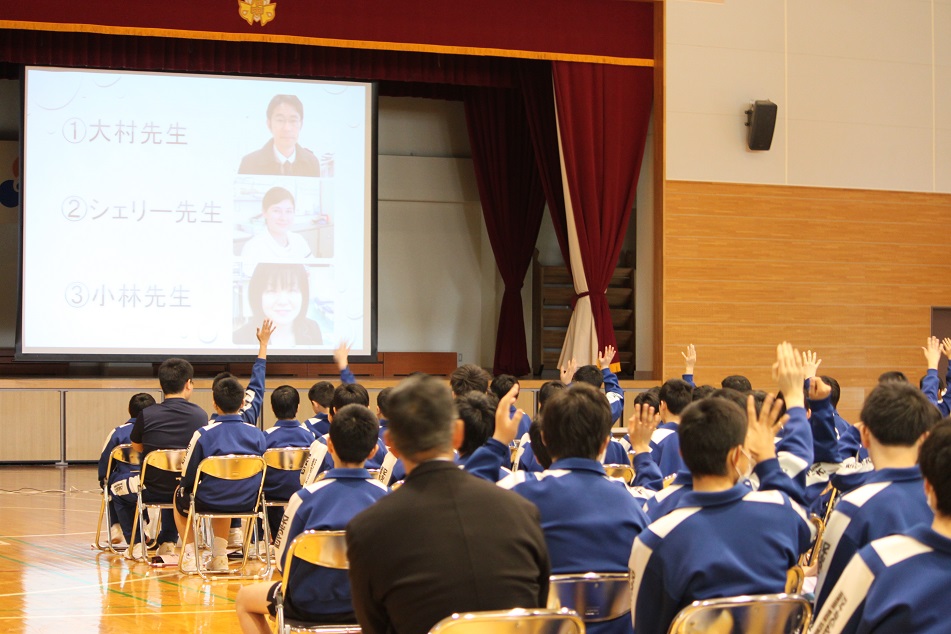 3学年は本日1校時、多目的室で学年集会を行いました。各学級役員の紹介の後、学年担当の先生方の自己紹介では、先生方の思いを伝えていただきました。