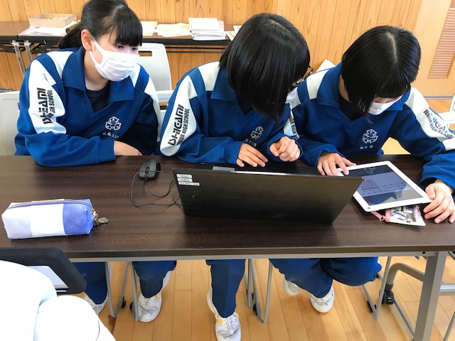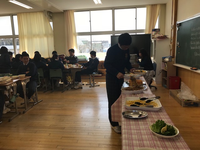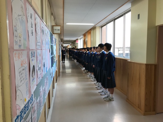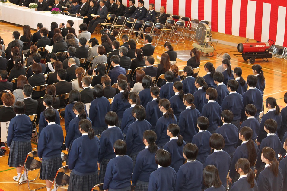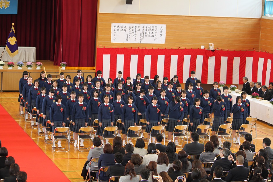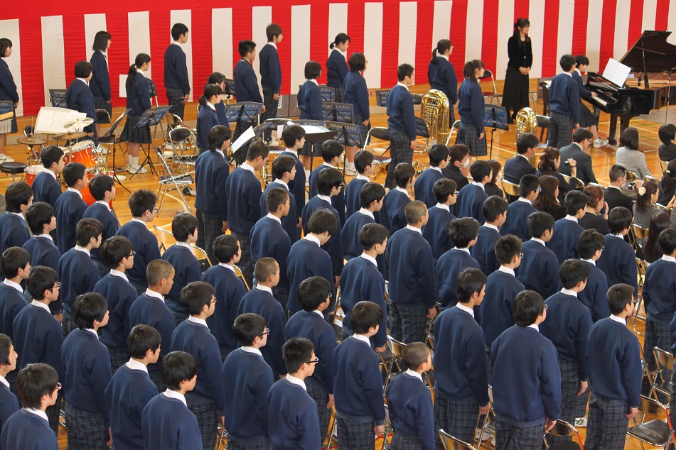 今日は卒業式、3年生の晴れの旅立ちの日です。1,2年生は式歌の最後の練習中です。