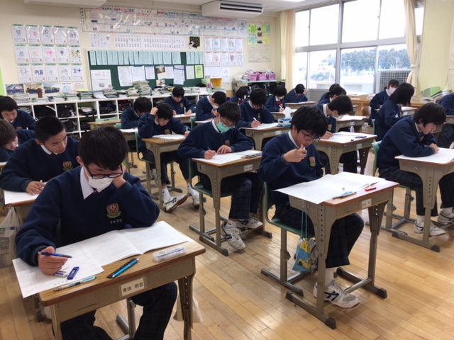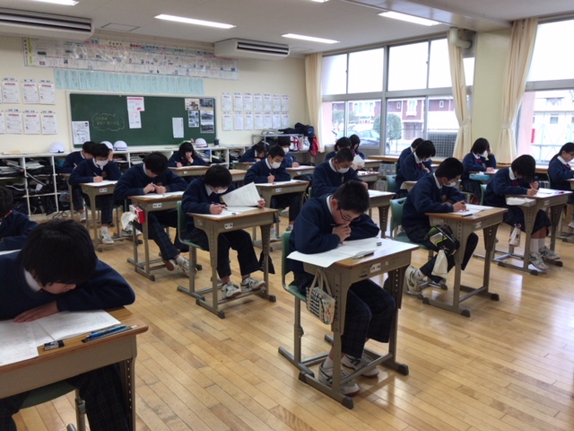 今日は県立高校Ⅱ期選抜試験当日です。1,2年生もそれぞれ1年後、2年後の今日を想定して学校で実力テストに取り組みました。