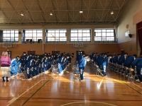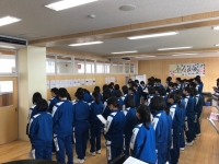 インフルエンザの流行が依然続いています。毎時間、授業終了時には先生方や保健委員が各学級で、うがい・手洗い・水分補給・換気の呼びかけを行っています。また、2校時と3校時の間の休み時間と昼休みには保健委員が放送で全校に呼びかけています。流行は収束に向かいつつありますが、十分注意をしてください。