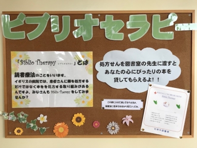 「ビブリオセラピー」とは、読書療法という本を使った治療の方法のことです。アメリカやイギリスの病院では治療の1つとして読書療法が取り入れられています。2月9日(金)から3月20日(火)まで、図書館と保健室のコラボ企画として、「ビブリオセラピー」を実施しています。保健室で処方せんを書いてもらい、図書室に持って行くと今の自分にぴったりの本を処方してもらえるというものです。