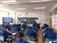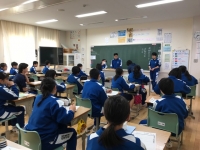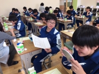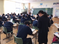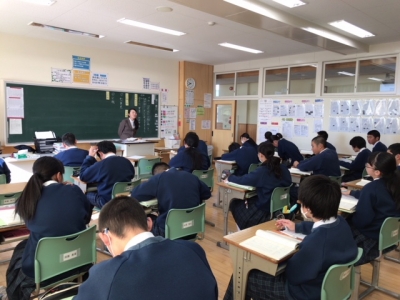 本日2校時、2年3組において国語の授業研究を行いました。向田邦子作「字のない葉書」から、手紙に込められた作者の父親の願いを読み取り、自分の意見をまとめました。ワークシートに読み取った内容をメモしたり、積極的に発言したりしながら作品を読み進め、班での話し合いを通して自分の考えを深めました。