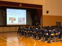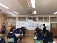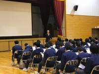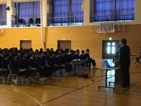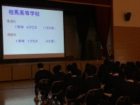 13:00より本校体育館において3年生と保護者を対象に、相双地区の高等学校の先生方をお招きして高校説明会を開催しました。先生方にはそれぞれの学校の特色やカリキュラムについて懇切丁寧に説明をしていただきました。生徒達も興味深く説明に耳を傾けていました。今日の説明会をきっかけに自身の進路希望実現に向けた学習が、より充実したものになることを期待しています。