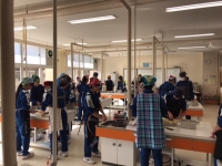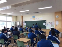 1年生を対象に、南相馬市健康づくり課の歯科衛生士の方々による歯科保健指導を行いました。今日の授業では歯肉炎のセルフチェック、歯垢の染め出しをしました。歯肉炎のセルフチェックでは、ポイントを教えてもらい、自分で鏡を見ながら厳しくチェックしました。また、染め出しでは、赤く染まったところを落とそうと、みんな一生懸命磨いており、歯科衛生士の方々が褒めてくださいました。