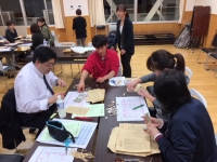 活動の主な内容は、各学級から出された食券の注文袋に記入されている注文個数・金額と代金の確認作業、前日および当日の役割分担や作業手順の打合せでした。細やかな確認作業ありがとうございました。