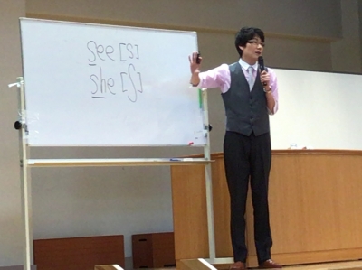 10月17日(火)、本校体育館において、南相馬市教育委員会によるスーパーティーチャー招へい事業の第2弾として、東進ハイスクール・東進予備校の英語科講師大岩秀樹先生による特別授業「大岩秀樹の直伝英語レベルアップ法」が実施されました。