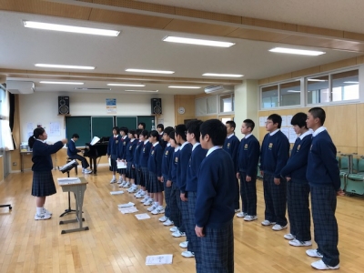 6校時、2年生は体育館で合唱コンクールに向けて学年練習を行いました。2年生各クラスとも男女の人数のバランスに課題はありますが、それぞれ工夫をしてここまで頑張ってきました。