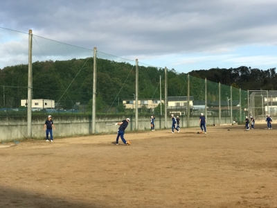 野球部が、10月29日に行われる新人戦県大会に向けて、顧問の松本誠喜先生、副顧問の大村勝先生のご指導の下、朝練を行っています。
