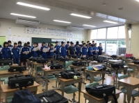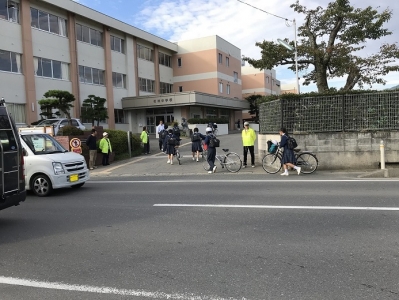 ・全校生徒があいさつを交わしあい、活気あふれる学校