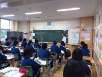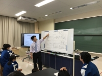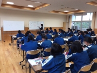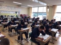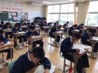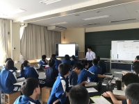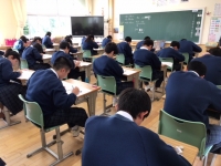 進学プラザの先生方による3年生への数学の授業もいよいよ最終回です。生徒達は、熱心に先生方の説明を聞き、図形の問題に取り組んでいました。
