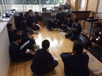昼の放送では生徒会各専門部による前期活動の反省と後期活動計画について、報告を行っています。今日は執行部の報告を生徒会長 古澤勇吾君が、代表委員の報告を委員長 石田未琴さんが行いました。