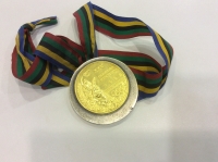 授業の中では、参加した全員が金メダルに触れさせていただきました。本物の金メダルのずっしりとした重さに驚くとともにその輝きにとても感動しました。質問コーナーでは、座右の銘について、「『素直』-何かあった時に、人や物のせいにするのではなく、素直に考えることが大切であること」を教えていただきました。