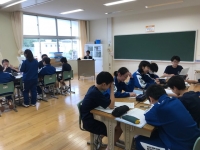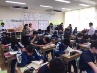 今日の4校時、3年3組で国語の授業研究が行われました。森鷗外の『高瀬舟』を読み、主人公・喜助の罪についての役人・庄兵衛の心の葛藤を、討論を通して深く掘り下げました。生徒達は根拠を明確にしながら、それぞれの意見を積極的に交流させ、考えを深めていきました。