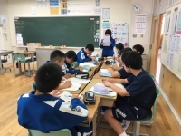 学校、家庭、地域が一体となって、未来を担う児童生徒の学力向上、教員の指導力向上、家庭・地域の教育力の向上に取り組むという本事業の趣旨に則り、石神中と石神二小の先生方が、石神一小の小学校3年生と5年生の算数の授業を参観しました。小学校における学力向上の取組や授業におけるきめ細やかな指導、子供達の学びの様子、小学校と中学校の円滑な接続の重要性について理解を深めました。