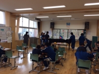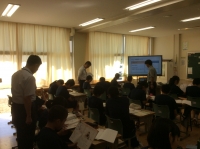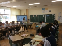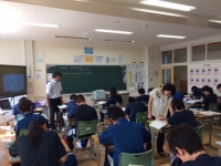 今日は、福島県教育庁義務教育課、相双教育事務所学校教育課の4名の主任指導主事、管理主事の皆様に、本校で進めている少人数教育ならびに学力向上に向けた授業実践を参観していただきました。生徒達は笑顔で積極的に意見を発表したり交流させたり、「主体的で協働的な学び」に取り組んでいました。参観の後、現在の学びを、今後どのようにして深めていくかについてご指導とご助言をいただきました。