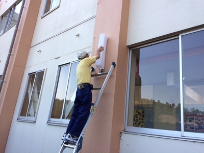 今日は、用務員の表さんに、校舎外壁の蛍光灯の掃除をしていただきました。蛍光灯についているカバーを外し、夏の間に集まってきた小さな虫やクモの巣を、きれいに取り除いてくださいました。日没が早まってきた校舎周辺を、明るく照らしてくれることでしょう。