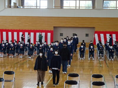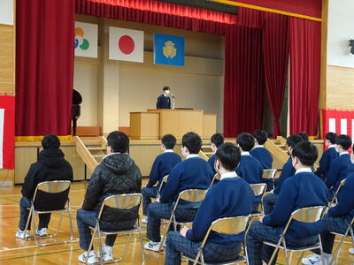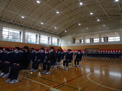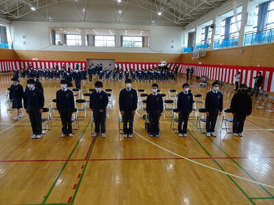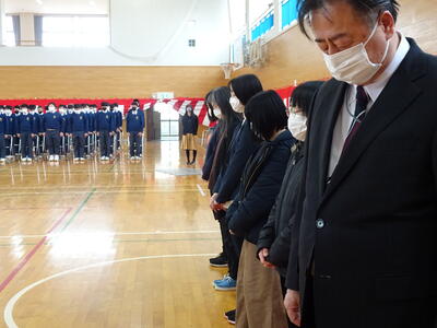 3月11日は第75回卒業証書授与式です。本日は、慰霊式後、卒業式予行練習が行われました。生徒、教職員らは、感染対策、マスク装着、距離間を取りながら、真剣に取り組んでいました。