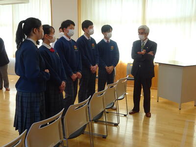 中島さんは、代表生徒らに「作品の見方、感じ方、受け止め方は、一人一人が違います。その感じたこと、それが答えです。」という話をしました。