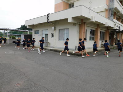 2022年7月25日 11時31分9月に行われます中体連駅伝大会に向けて、今日から本格的に練習が始まりました。練習時間帯は、7:30~8:30です。楢葉町で行われる県大会出場を目標に、チーム一丸となっての練習がスタートしました。練習には、選抜メンバー以外に野球部員や女子バレー部員も参加しています。