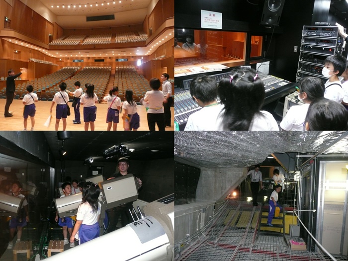 2016年6月23日 08時54分3年生がゆめはっと見学に行ってきました。普段なら一般の方は入れない舞台の裏側や音響室なども見学させていただきました。音響室や照明室にはものすごい数のミキサーやスイッチがありました。階段を登り、ゆめはっとの最上階にあるピンルームと呼ばれる部屋には大きなスポットライトがありました。施設見学の後、たくさんの質問に答えていただきました。お忙し中案内をしていただいたスタッフの皆様、ありがとうございました。