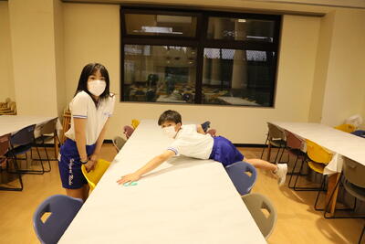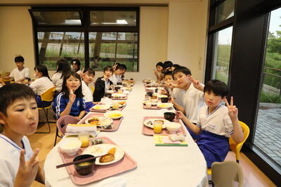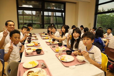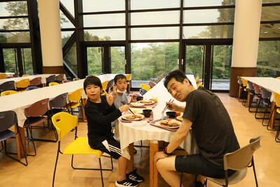 一生懸命、活動したあとの夕食はおいしい。片付けも率先して。すばらしい。