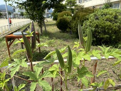 2024年8月23日 14時47分夏休みも終わり、朝夕の風が涼しくなってまいりました。学校では、1学期から育てていた植物たちが立派に実をつけています!