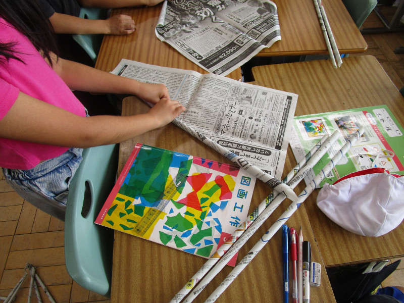 2025年6月26日 16時14分図工の時間に、新聞紙を丸めて作った棒で立体的アートに挑戦しました!