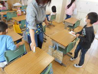 放課後には、全児童の机と椅子のアルコール消毒を行っています。