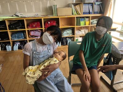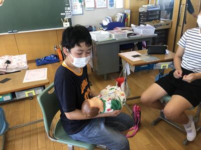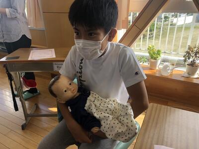 2022年9月9日 15時00分6年生は、思春期保健教室を行いました。黒い画用紙に針で穴を開けたものを光にかざして、いのちのはじまりに触れました。その小さなものが40週間で赤ちゃんになるという奇跡に歓声を上げながら感激していました。人形ですが、産まれたばかりの赤ちゃんの重さを体験すると「お家の人は、私たちを守ってくれてんだ」「予想よりも重かった」「首がぐらぐらしていた」等の感想を述べていました。
