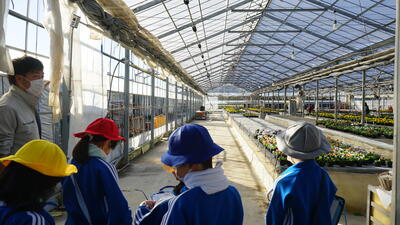 2022年11月25日 10時56分カラフル探検隊の進路は南西です。学校に隣接しているカヤノキファームさんに、野菜作りの秘密を探りに出かけました。先日も同じ野菜作りの武田ファームさんに探検に行きましたが、同じ野菜作りでも違いがたくさんありました。同じ野菜と言っても、種類によって作り方や工夫するところが違います。