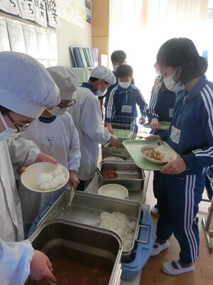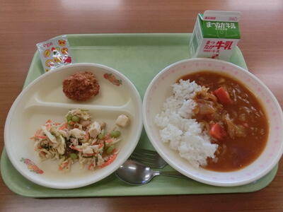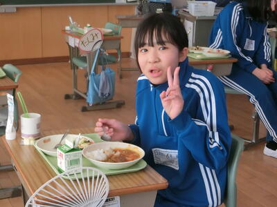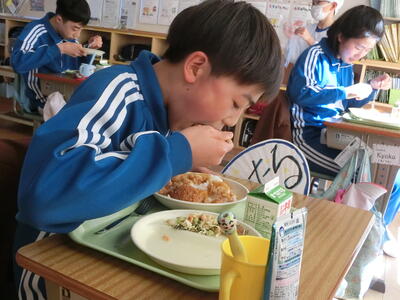 2023年2月28日 14時25分今日の給食は受験応援メニューの「カツカレー」です。