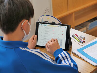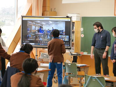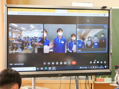 外国語の学習では、リモートを活用して八沢小学校の6年生と交流しました。英語で自己紹介をしたり、なりたい職業や、入りたい部活などを各校グループごとに発表しました。また、ALTの先生がそれに対して個人に質問をし、質問された子は英語で答えました。