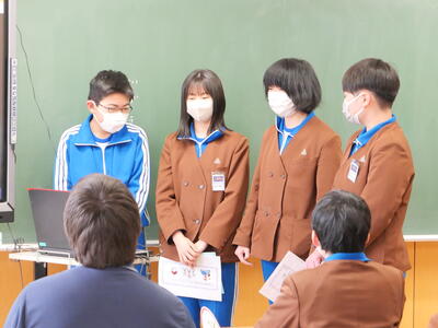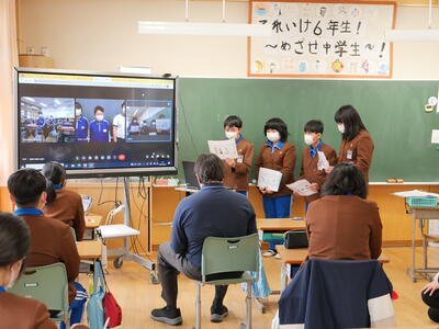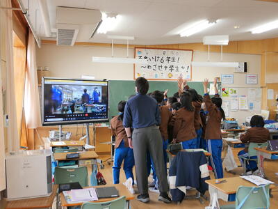 2023年3月2日 14時16分 外国語の学習では、リモートを活用して八沢小学校の6年生と交流しました。英語で自己紹介をしたり、なりたい職業や、入りたい部活などを各校グループごとに発表しました。また、ALTの先生がそれに対して個人に質問をし、質問された子は英語で答えました。