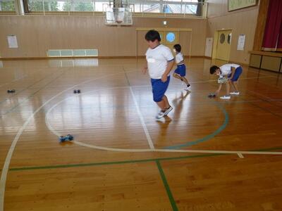電気のはたらき 2024年6月26日 15時30分 4年生が理科「電気のはたらき」の学習で、乾電池でモーターを回して車を走らせていました。この学習を通して、電流の流れ方や電池のつなぎ方を学習しています。車をバックさせるにはどうすればいいのか考える場面も見られました。 いいね 9