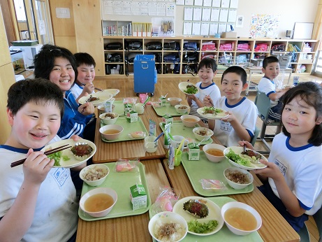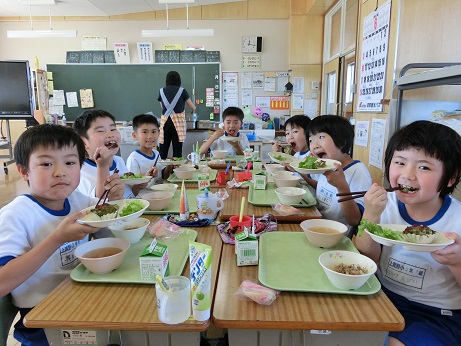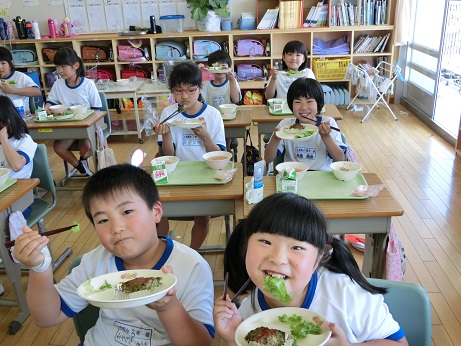 植樹祭記念献立 2018年6月4日 13時55分 今日の給食は6月10日に開催される全国植樹祭をテーマにした献立です。緑しげる木をモチーフにほうれん草をペーストして、混ぜ込んであるハンバーグです。今月の献立表に作り方がのっていますので、おうちでもぜひ作ってみてください。 いいね 3