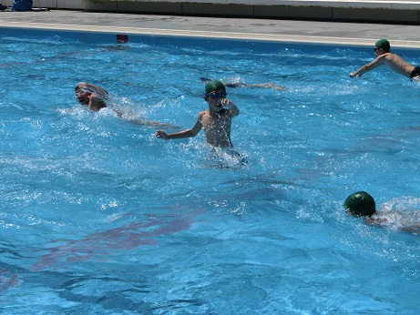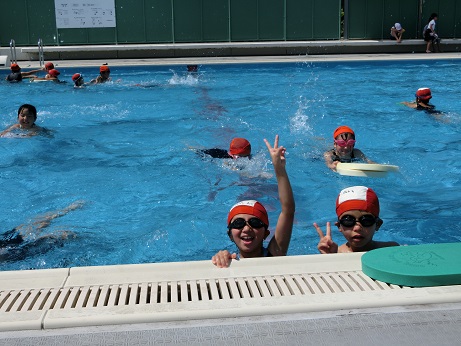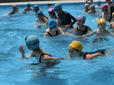 プール1番のりは、3・4年生です。とても暑かったので、プールの水が気持ち良さそうです。